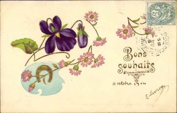 Präge Ak Veilchen, Blumen, Hufeisen, Kitsch