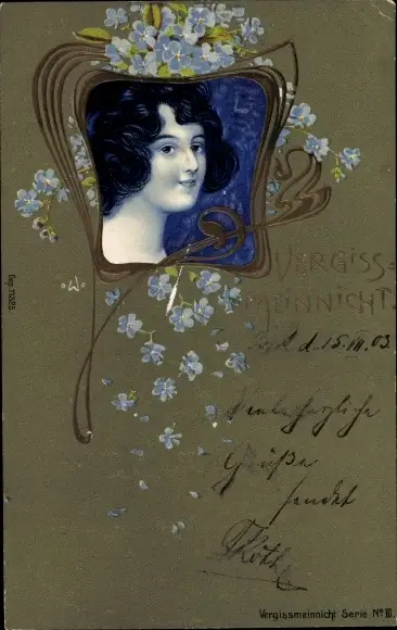 Präge Ak Vergissmeinnicht, Frauenbildnis