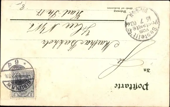 Zustand, siehe Scan, gelaufen, 1903 - ca 9 cm X 14 cm