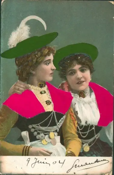 Präge Ak Zwei Mädchen in Tracht, Hut, Portrait