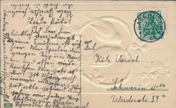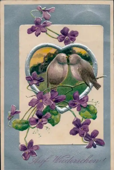 Präge Ak Zwei Vögel, Kuss, Veilchen, Kitsch