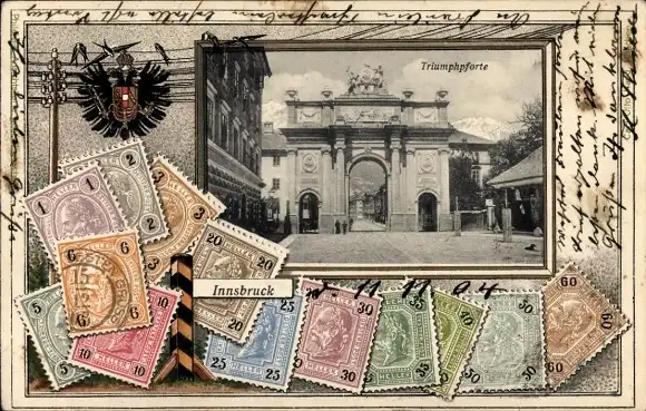 Präge Briefmarken Ak Innsbruck in Tirol, Triumphpforte