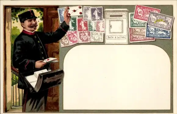 Präge Briefmarken Ak Postbote, französische Briefmarken