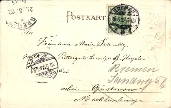 Zustand, siehe Scan, gelaufen, 1902 - ca 14 cm X 9 cm