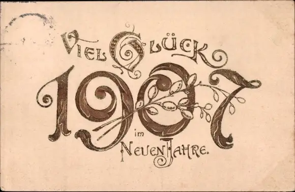 Präge Glitzer Ak Glückwunsch Neujahr 1907, Jahreszahl