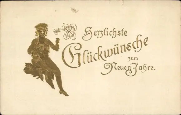 Präge Glitzer Ak Glückwunsch Neujahr, Kind, Glücksklee