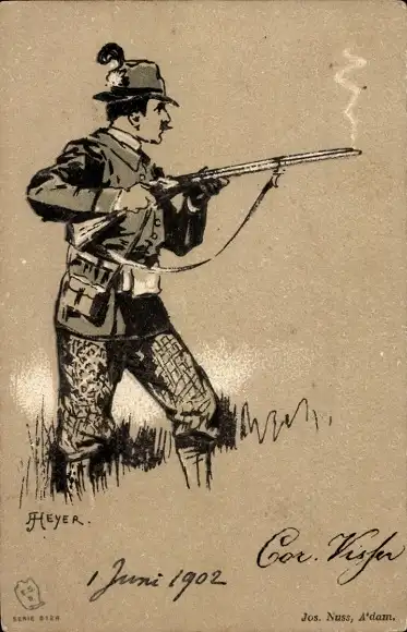 Präge Künstler Ak Heyer, Jäger, Gewehr, Jagd