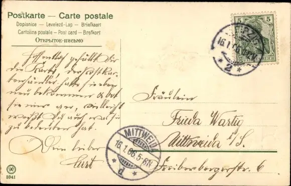 Zustand, siehe Scan, gelaufen, 1906 - ca 14 cm X 9 cm