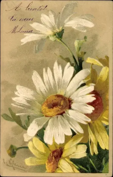 Präge Künstler Litho Klein, C., Margeriten, Blumen