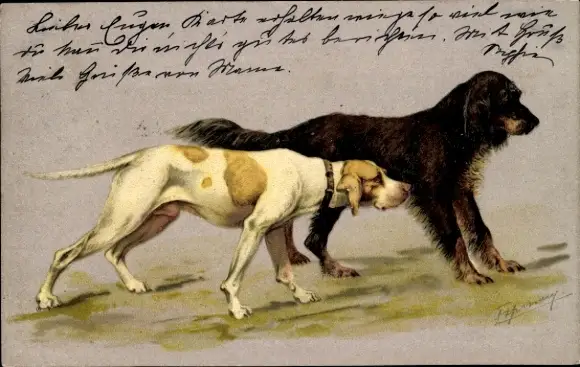Präge Künstler Litho Zwei Hunde, Jagdhunde