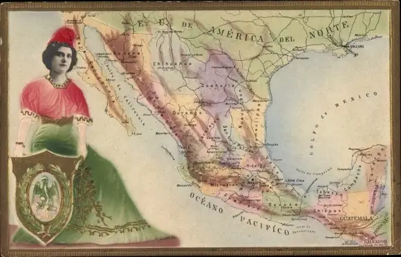 Präge Landkarten Ak Südamerika, Wappen, Frau in Tracht