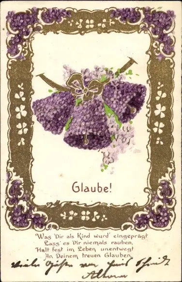Präge Litho Allegorie, Glaube, Glocken, Veilchen