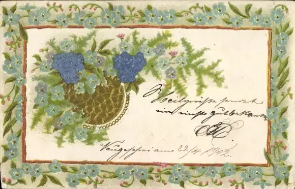 Präge Litho Blumen, Vergissmeinnicht, Kitsch