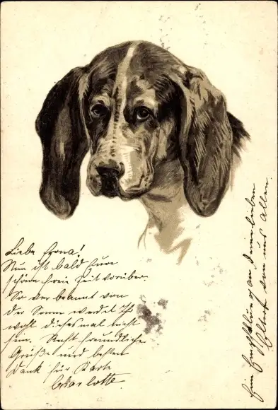 Präge Litho Brauner Hund, Tierportrait