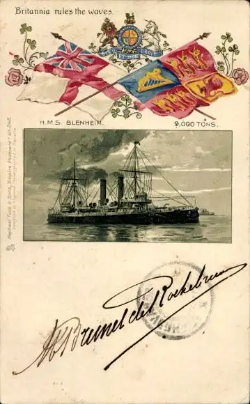 Präge Litho Britisches Kriegsschiff, HMS Blenheim