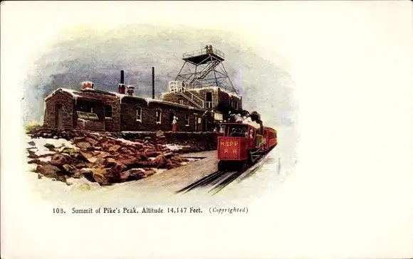 Präge Litho Colorado USA, Summit of Pike's Peak, US Amerikanische Eisenbahn, Rocky Mountains