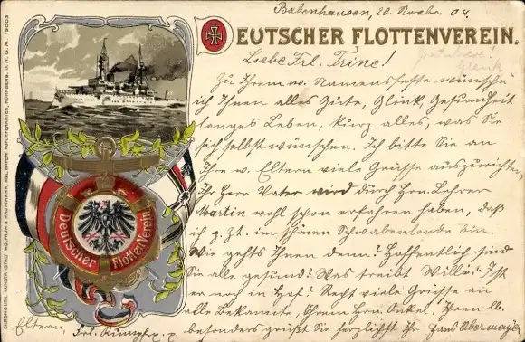 Präge Litho Deutscher Flottenverein, Fahnen, Kriegsschiff