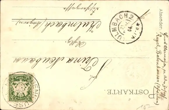 Zustand, siehe Scan, gelaufen, 1904 - ca 14 cm X 9 cm