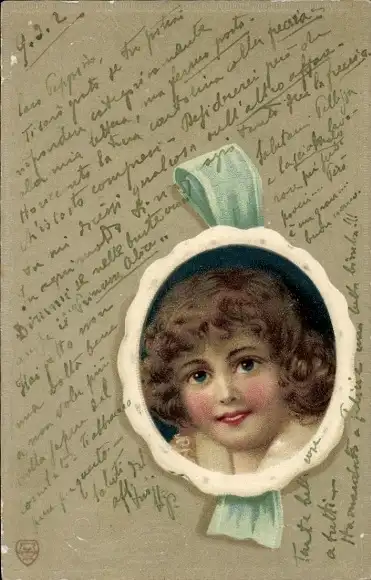 Präge Litho Gemaltes Kind-Porträt, Lockige Haare