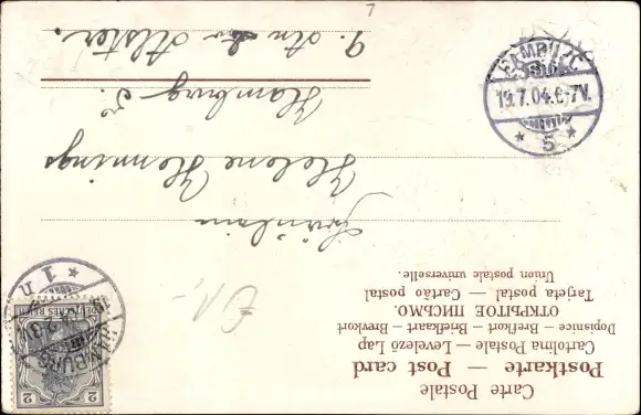 Zustand, siehe Scan, gelaufen, 1904 - ca 14 cm X 9 cm