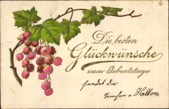 Präge Litho Glückwunsch Geburtstag, Johannisbeeren am Zweig