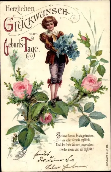 Präge Litho Glückwunsch Geburtstag, Junge, Rosen