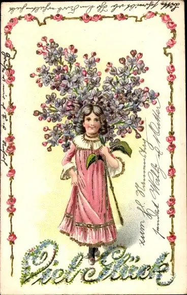 Präge Litho Glückwunsch, Mädchen, Blumenstrauß, Blumen