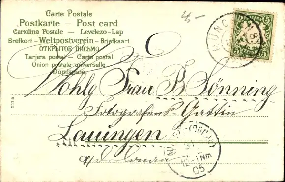 Zustand, siehe Scan, gelaufen, 1905 - ca 9 cm X 14 cm