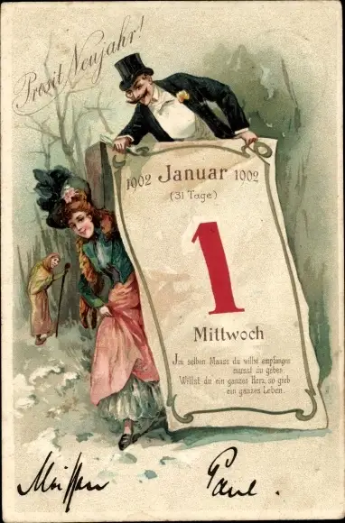 Präge Litho Glückwunsch Neujahr, Kalenderblatt, 1. Januar, Mittwoch