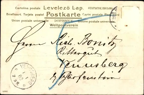 Zustand, siehe Scan, gelaufen, 1902 - ca 9 cm X 14 cm