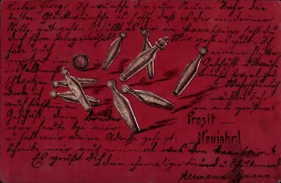 Präge Litho Glückwunsch Neujahr, Kegeln, Pins