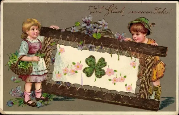 Präge Litho Glückwunsch Neujahr, Kinder, Kleeblätter