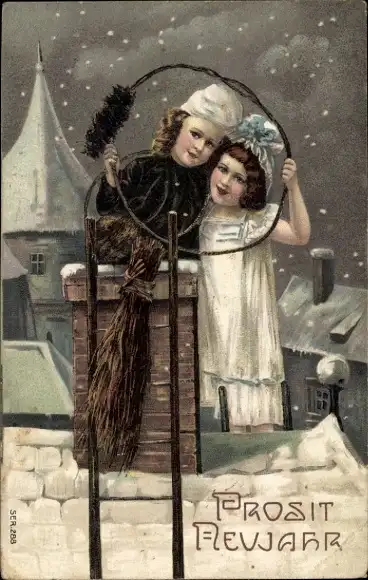 Präge Litho Glückwunsch Neujahr, Schornsteinfeger