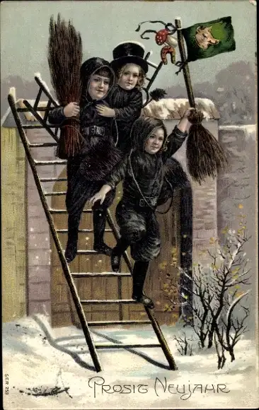 Präge Litho Glückwunsch Neujahr, Schornsteinfeger