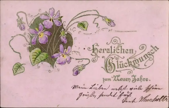 Präge Litho Glückwunsch Neujahr, Veilchen