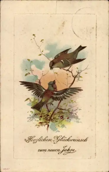 Präge Litho Glückwunsch Neujahr, Zwei Vögel