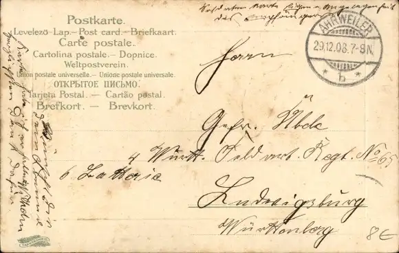 Zustand, siehe Scan, gelaufen, 1908 - ca 9 cm X 14 cm