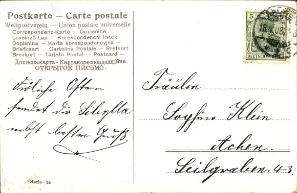 Zustand, siehe Scan, gelaufen, 1908 - ca 9 cm X 14 cm
