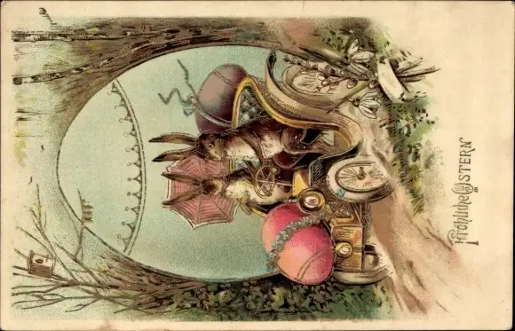 Präge Litho Glückwunsch Ostern, Osterhasen, Osterei, Automobil