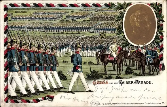 Präge Litho Gruß von der Kaiserparade, Kaiser Wilhelm II.