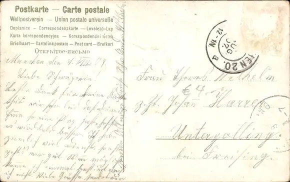 Zustand, siehe Scan, gelaufen, 1907 - ca 14 cm X 9 cm