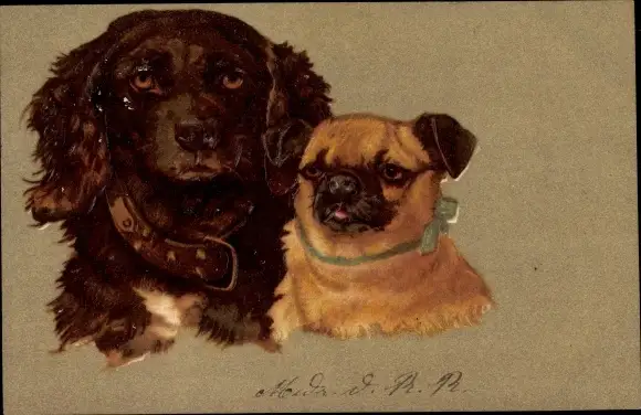 Präge Litho Hunde, Kopfstudien