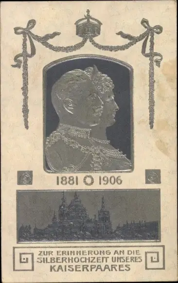 Präge Litho Kaiser Wilhelm II., Kaiserin Auguste Viktoria, Silberhochzeit 1906, Portrait