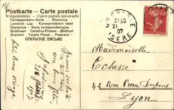 Zustand, siehe Scan, gelaufen, 1907 - ca 14 cm X 9 cm
