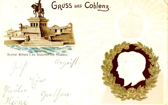 Präge Litho Koblenz, Kaiser Wilhelm II., Kaiserin Auguste Viktoria, Kaiser Wilhelm Denkmal