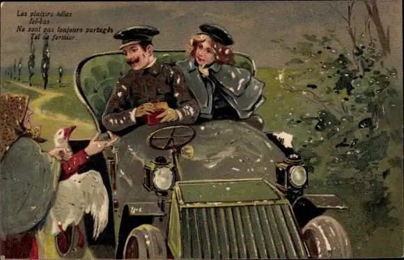 Präge Litho Les plaisiers helas, Paar in einem Automobil