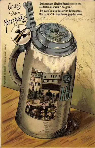 Präge Litho München, Hofbräuhaus, Bierkrug, Spruch