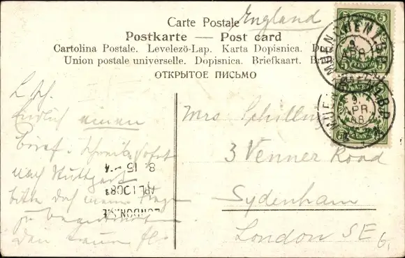 gelaufen 1908, leichter Eckknick rechts oben, sonst guter Zustand