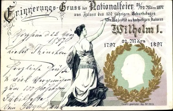 Präge Litho Nationalfeier 1897, 100 jähriger Geburtstag Kaiser Wilhelm I
