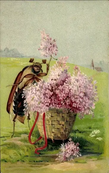 Präge Litho Pfingsten, Maikäfer, Blumenkorb